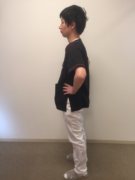 ③顔は正面に向けたまま、膝を曲げずに、お腹を前に突き出す。