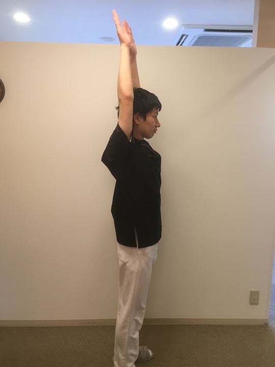 ③寄せた状態をキープしたまま、腕を上にあげていきます。