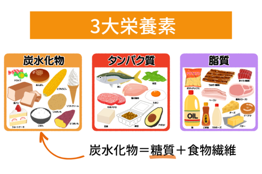 私たちが日頃食べる食事は、三大栄養素である『糖質』『タンパク質』『脂質』に分けることができます。