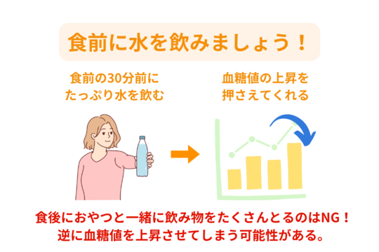 食事の前に飲むことで、血糖値の上昇を抑える効果を十分に発揮させることができます。