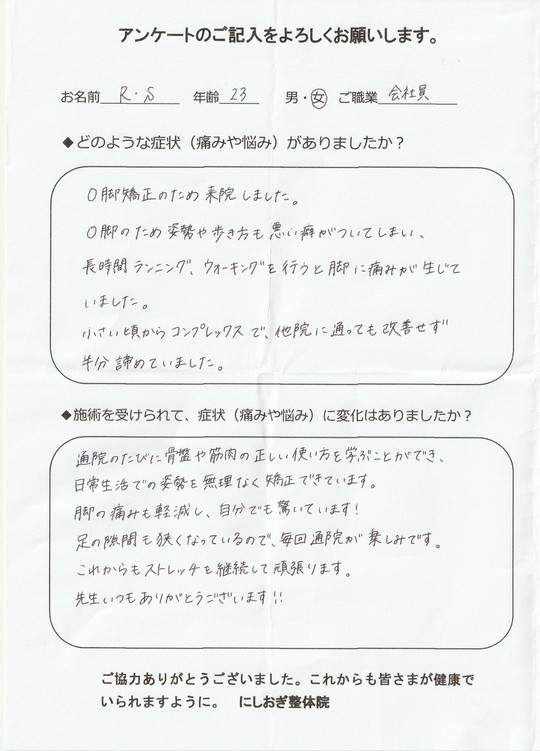 また、他でO脚矯正をした経験があるが治らなかった、一度治ったが戻ってしまったという方も、他とは違う当院のO脚施術を試してみて下さい。