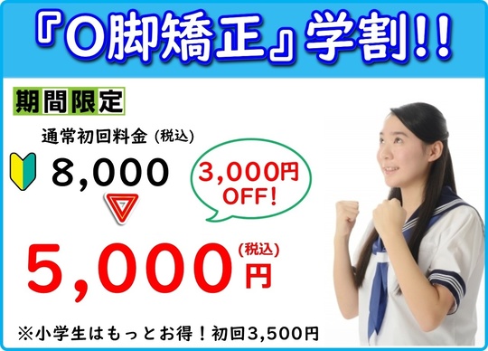 また、O脚になりにくい姿勢や歩き方などもご指導いたします。