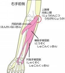 一般的にゴルフ肘とは、肘の内側が痛くなる状態です。