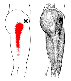 ここにトリガーポイントができると、このように腸脛靭帯炎と非常に似たような痛みを出します。