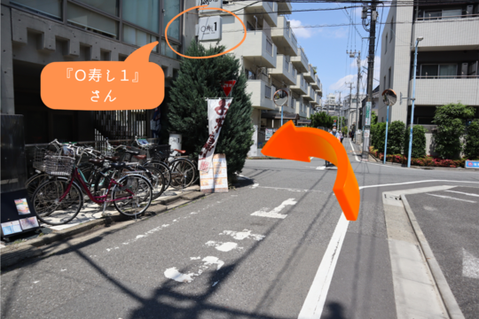 『O寿し1』さんの角を左に曲がって歩きます。