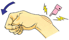 ・指を折り曲げると痛い