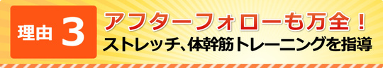 セルフケアとして、腰痛改善のストレッチや、筋力アップのための体幹筋トレーニングをアドバイスします。