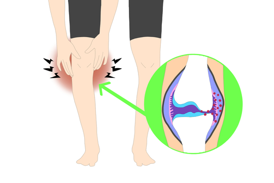 これは主に膝の軟骨がすり減り、骨同士がぶつかることで、過剰に関節液が出てしまうことで起こります。